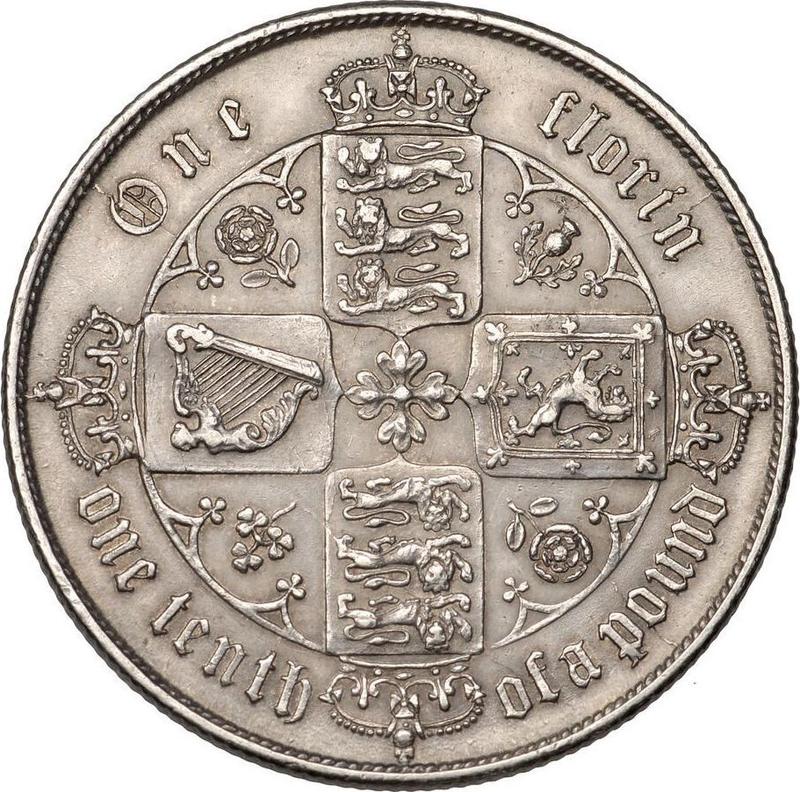 Find out the current coin value of the British Florin 1860 "Gothic" with mark WW. This silver coin from the times of Victoria. Wondering how much a coin like this is worth? The record price belongs to the lot 21917 sold at the Heritage Auctions auction for USD 4,888. Bidding took place January 3, 2010.
