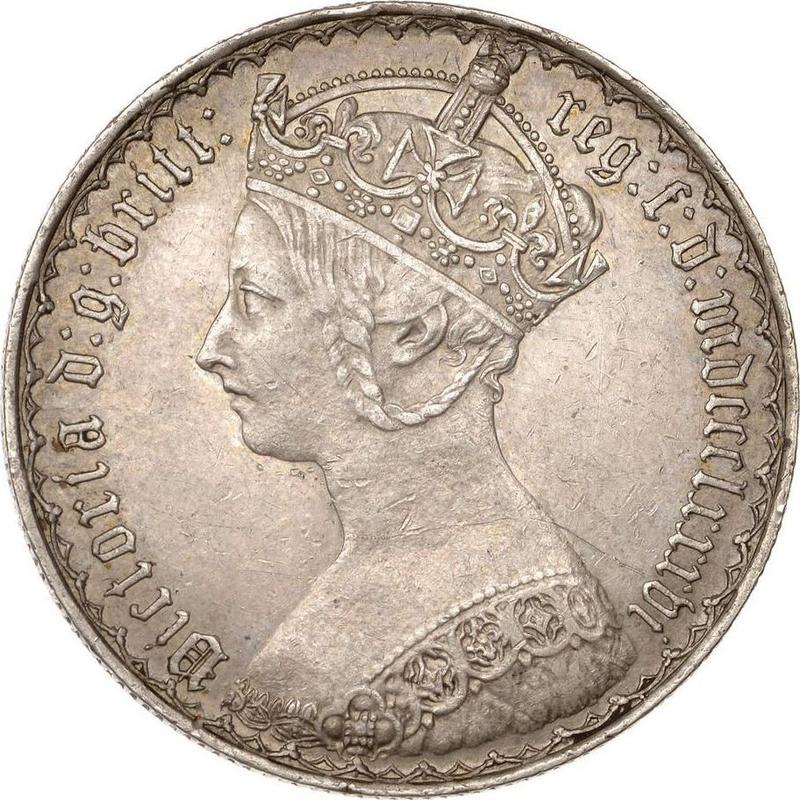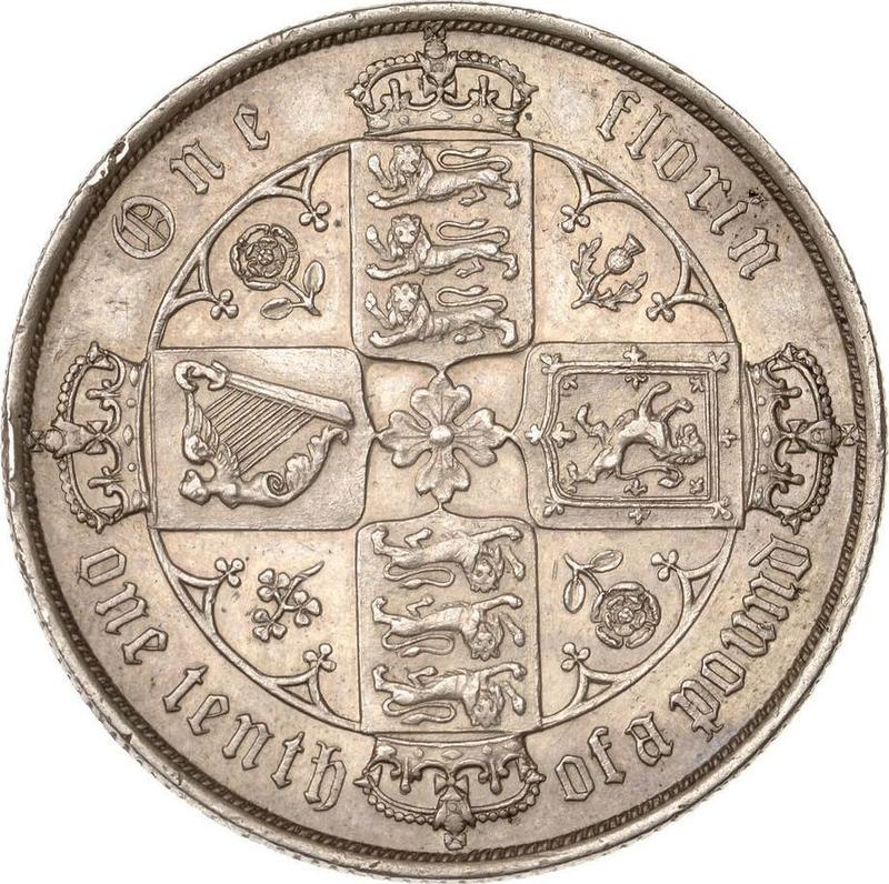 Find out the current coin value of the British Florin 1886 "Gothic". This silver coin from the times of Victoria. Wondering how much a coin like this is worth? The record price belongs to the lot 35391 sold at the Heritage Auctions auction for USD 7,800. Bidding took place August 27, 2025.