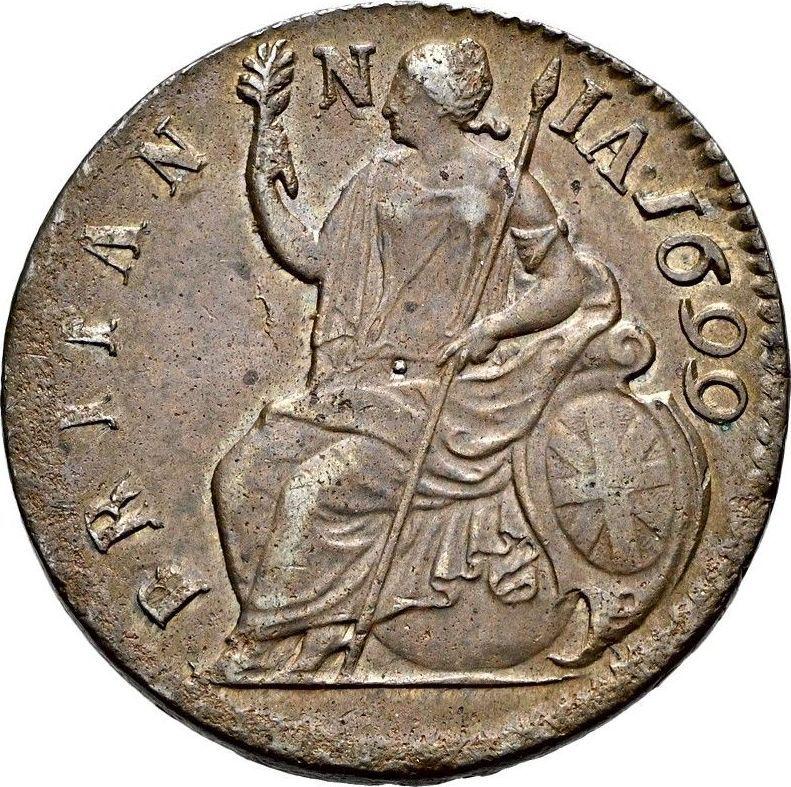Find out the current coin value of the British Halfpenny 1699 . Date in legend. This copper coin from the times of William III. Wondering how much a coin like this is worth? The record price belongs to the lot 1353 sold at the Numismatica Ars Classica, Zurich auction for CHF 5,500. Bidding took place May 8, 2024.