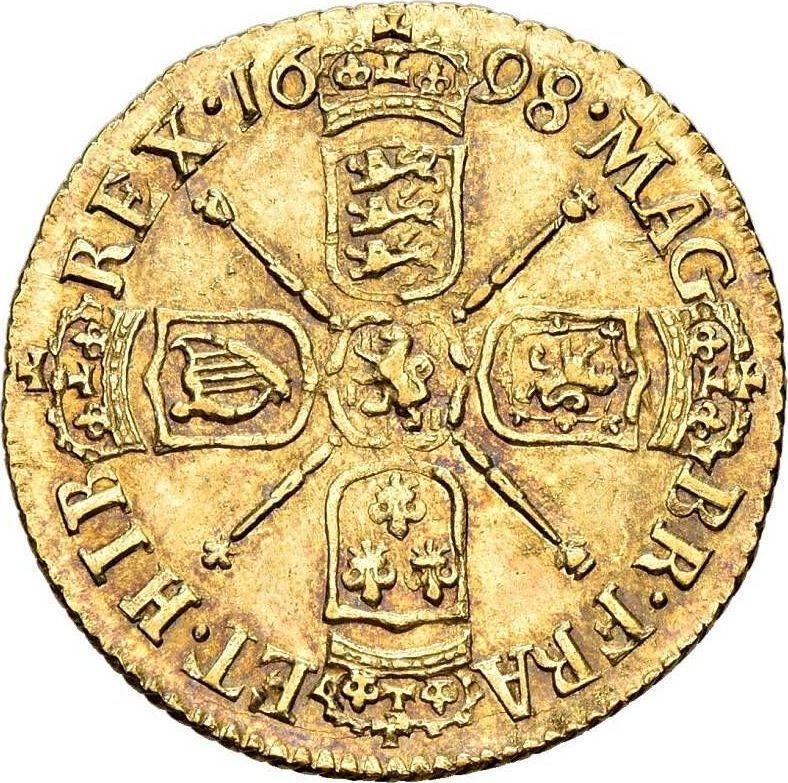 Find out the current coin value of the British Half Guinea 1698 . This gold coin from the times of William III. Wondering how much a coin like this is worth? The record price belongs to the lot 1035 sold at the Baldwin's of St. James's auction for GBP 4,500. Bidding took place September 30, 2016.