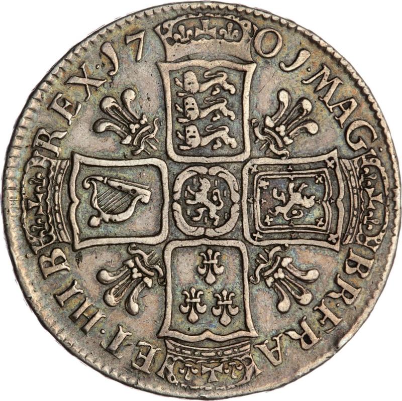 Find out the current coin value of the British Halfcrown 1701 "New large shields". Plumes in angles. This silver coin from the times of William III. Wondering how much a coin like this is worth? The record price belongs to the lot 94 sold at the St James’s Auctions auction for USD 12,500. Bidding took place January 15, 2025.