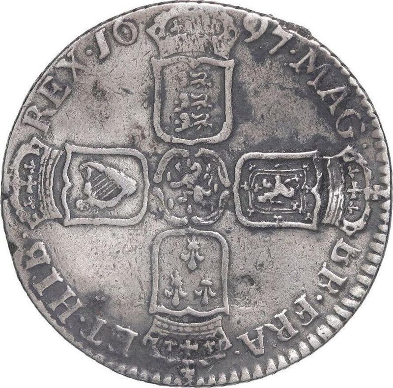 How much is the silver coin of William III Shilling 1697 B "First laureated bust"?