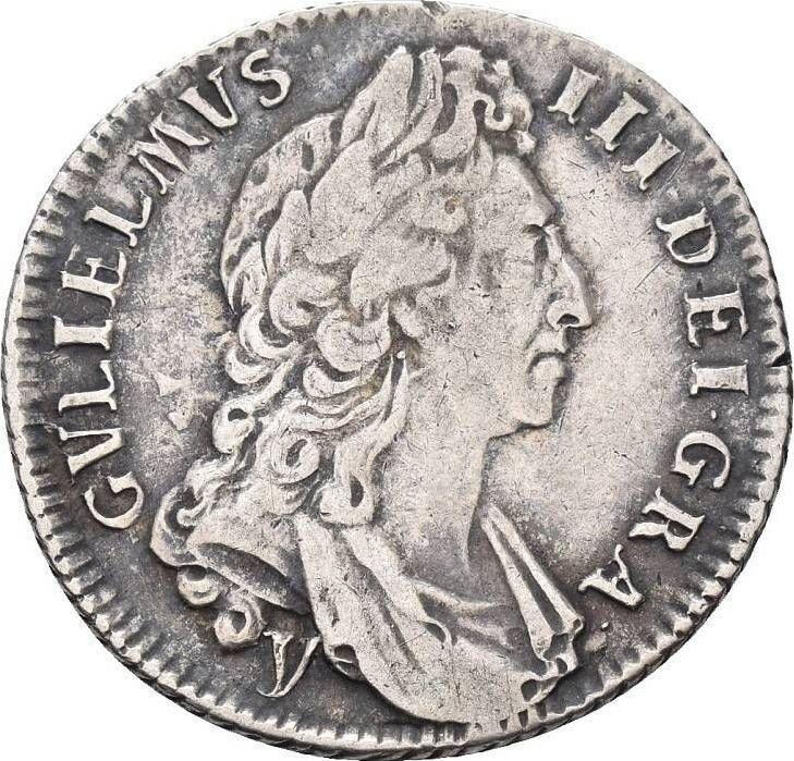 How much is the silver coin of William III Shilling 1697 y "Third laureate bust"?