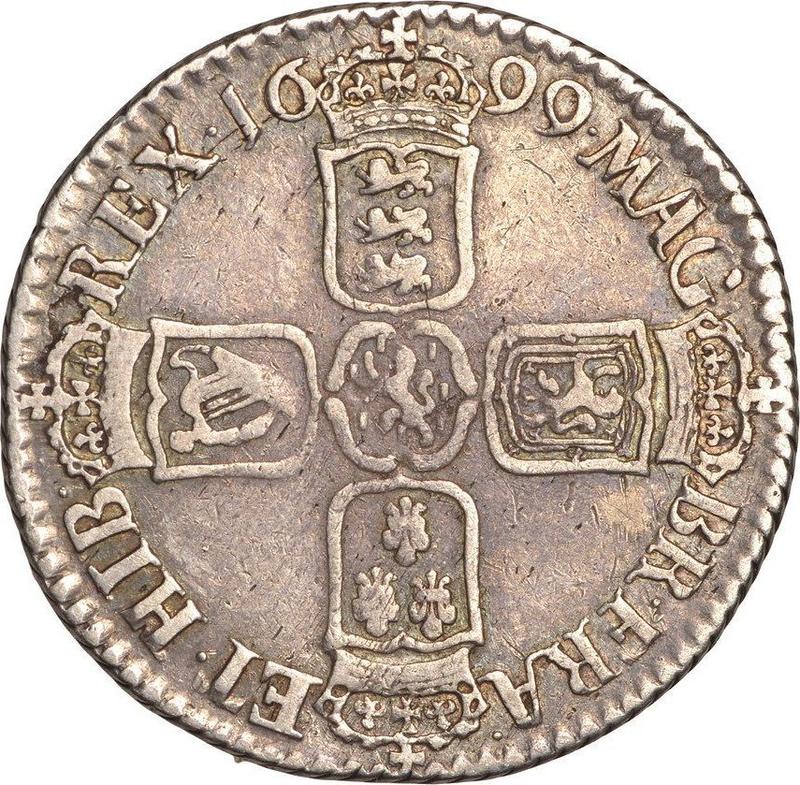 How much is the silver coin of William III Shilling 1699 "Fourth laureate bust"?