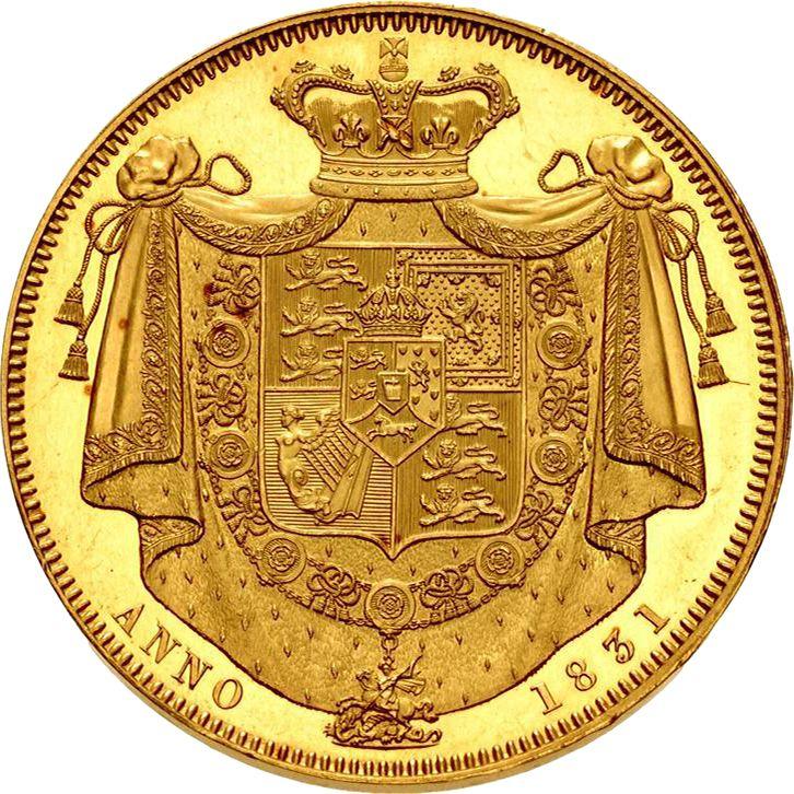 Find out the current coin value of the British Pattern Crown 1831 with mark WW. This gold coin from the times of William IV struck at the The Royal mint Mint. Wondering how much a coin like this is worth? The record price belongs to the lot 805 sold at the MDC Monaco auction for EUR 820,000. Bidding took place October 29, 2020.