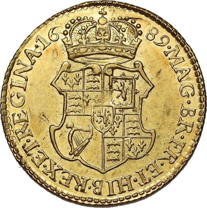 Find out the current coin value of the British Half Guinea 1689 "First busts". This gold coin from the times of William III and Mary II. Wondering how much a coin like this is worth? The record price belongs to the lot 51644 sold at the Heritage Auctions auction for USD 6,900. Bidding took place January 7, 2007.