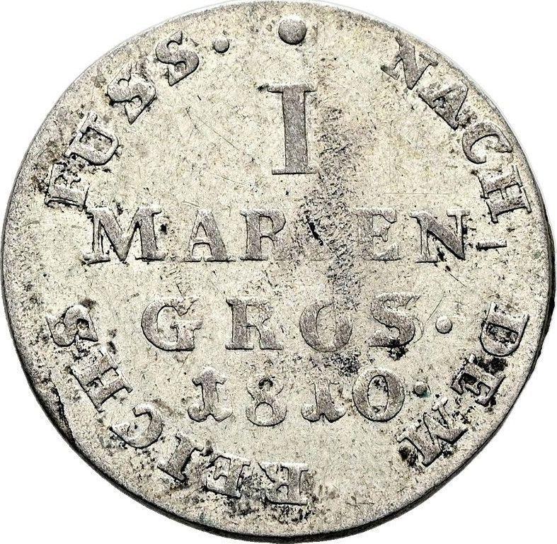 Find out the current coin value of the Westphalian Mariengroschen 1810 with mark C. This silver coin from the times of Jerome Napoleon. Wondering how much a coin like this is worth? The record price belongs to the lot 1125 sold at the WAG online Auktionen oHG auction for EUR 175. Bidding took place January 14, 2018.