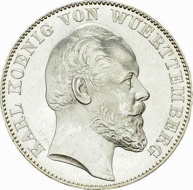 Find out the current coin value of the Württemberg Thaler 1866 . This silver coin from the times of Charles I struck at the Stuttgart Mint. Wondering how much a coin like this is worth? The record price belongs to the lot 8331 sold at the Fritz Rudolf Künker GmbH & Co. KG auction for EUR 2,300. Bidding took place March 3, 2025.