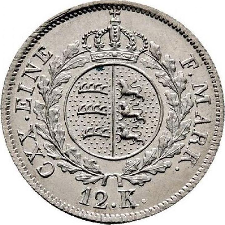 Find out the current coin value of the Württemberg 12 Kreuzer 1824 with mark W. This silver coin from the times of William I struck at the Stuttgart Mint. Wondering how much a coin like this is worth? The record price belongs to the lot 1656 sold at the Auktionen Münzhandlung Sonntag auction for EUR 850. Bidding took place November 27, 2017.