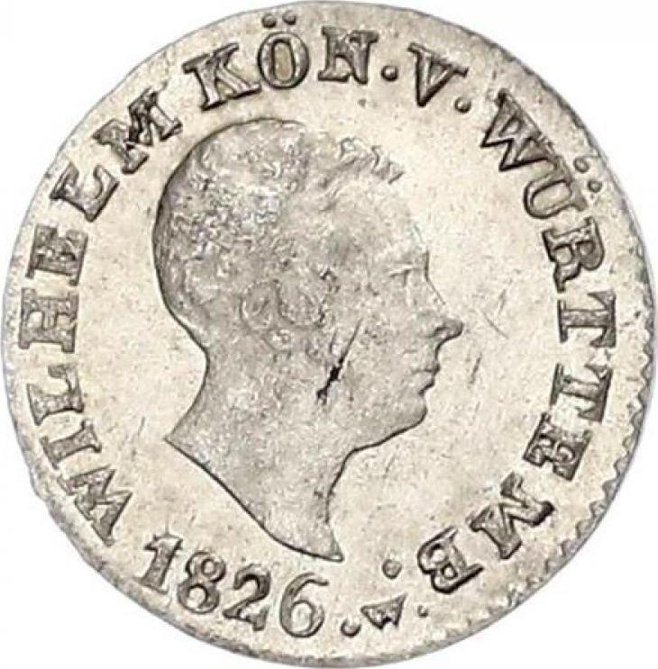 Find out the current coin value of the Württemberg Kreuzer 1826 with mark W. This silver coin from the times of William I struck at the Stuttgart Mint. Wondering how much a coin like this is worth? The record price belongs to the lot 1142 sold at the WAG online Auktionen oHG auction for EUR 52. Bidding took place January 14, 2018.