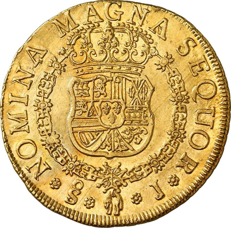 Entdecken Sie den aktuellen Wert der chilenischen Münze 8 Escudos 1759 mit Markierung So J. Diese Goldmünze stammt aus der Zeit von Ferdinand VI und wurde vom Münzamt in Santiago de Chile geprägt. Wie viel ist eine solche Münze wert? Der Rekordpreis gehört zu Los 158, welches bei Aureo & Calicó, S.L. für 8.500 EUR verkauft wurde. Die Versteigerung erfolgte am 29. November 2012.