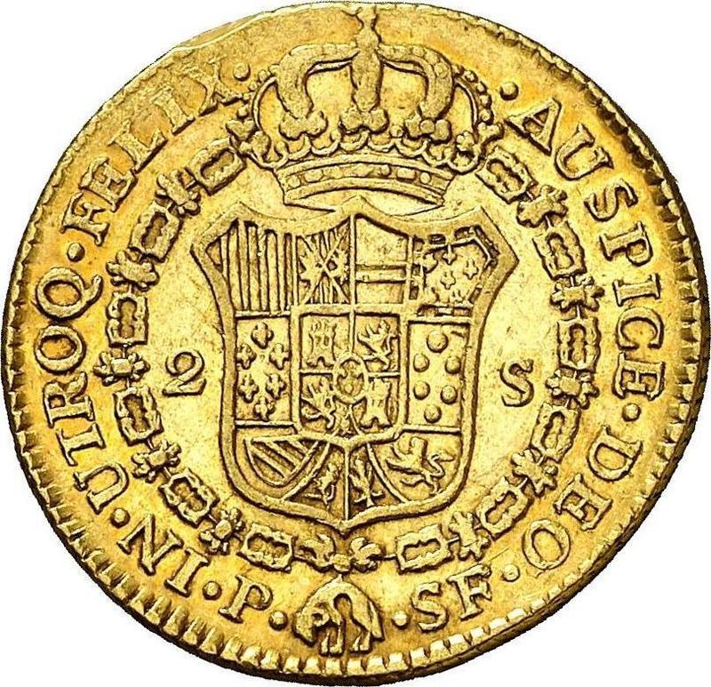 2 Escudos 1779 P SF (Kolumbien, Karl III)