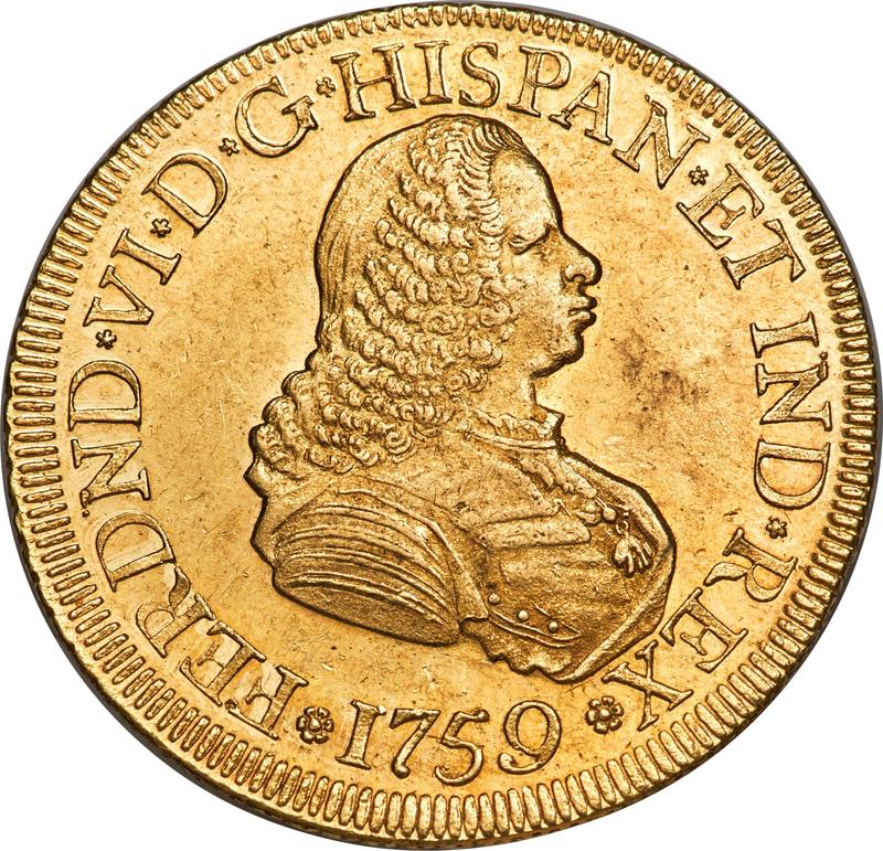 8 Escudos 1759 PN J (Kolumbien, Ferdinand VI)
