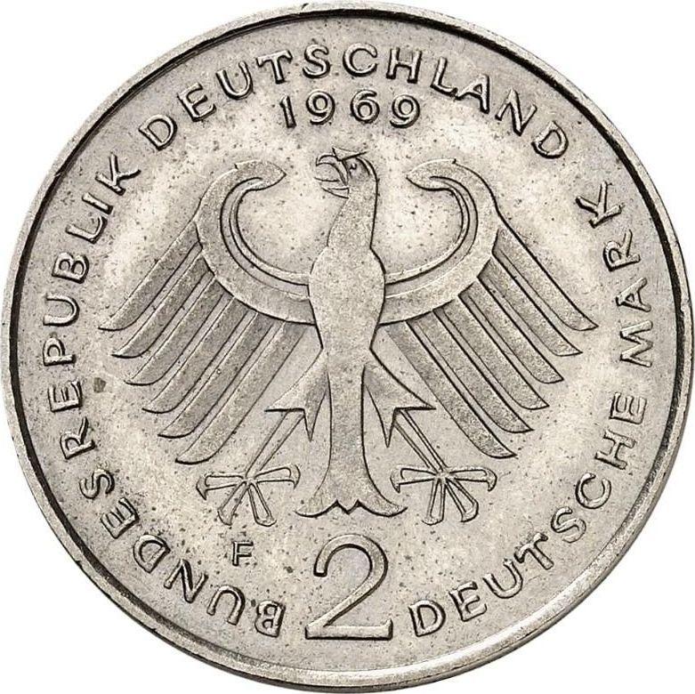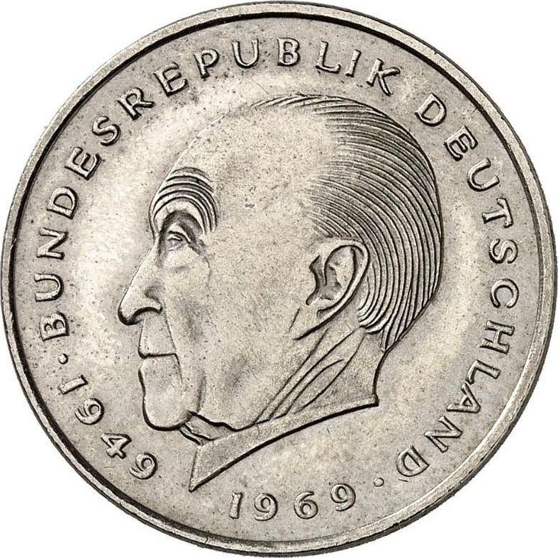 2 Mark 1969-1987 "Konrad Adenauer". Glatter Rand (Deutschland, BRD)