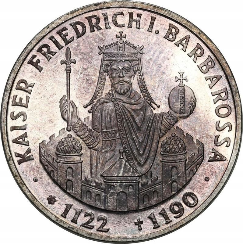 Entdecken Sie den aktuellen Wert der deutschen Münze 10 Mark 1990 "Friedrich Barbarossa" mit Markierung F. Diese Silbermünze stammt aus der Zeit der BRD und wurde vom Münzamt in Stuttgart geprägt. Wie viel ist eine solche Münze wert? Der Rekordpreis gehört zu Los 303, welches bei Holmasto für 60 EUR verkauft wurde. Die Versteigerung erfolgte am 7. Oktober 2023.