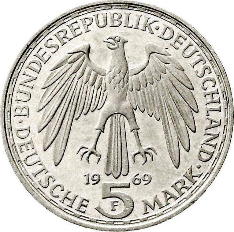 5 Mark 1969 F "Mercator". Randschrift "EINIGKEIT UND RECHT UND FREIHEIT" (Deutschland, BRD)