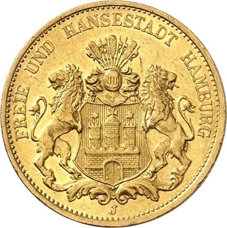 Entdecken Sie den aktuellen Wert der deutschen Münze 20 Mark 1893 "Hamburg" mit Markierung J. Diese Goldmünze stammt aus der Zeit des Deutschen Kaiserreichs und wurde vom Münzamt in Hamburg geprägt. Wie viel ist eine solche Münze wert? Der Rekordpreis gehört zu Los 198, welches bei Auktionshaus Rapp für 16.000 CHF verkauft wurde. Die Versteigerung erfolgte am 25. November 2014.