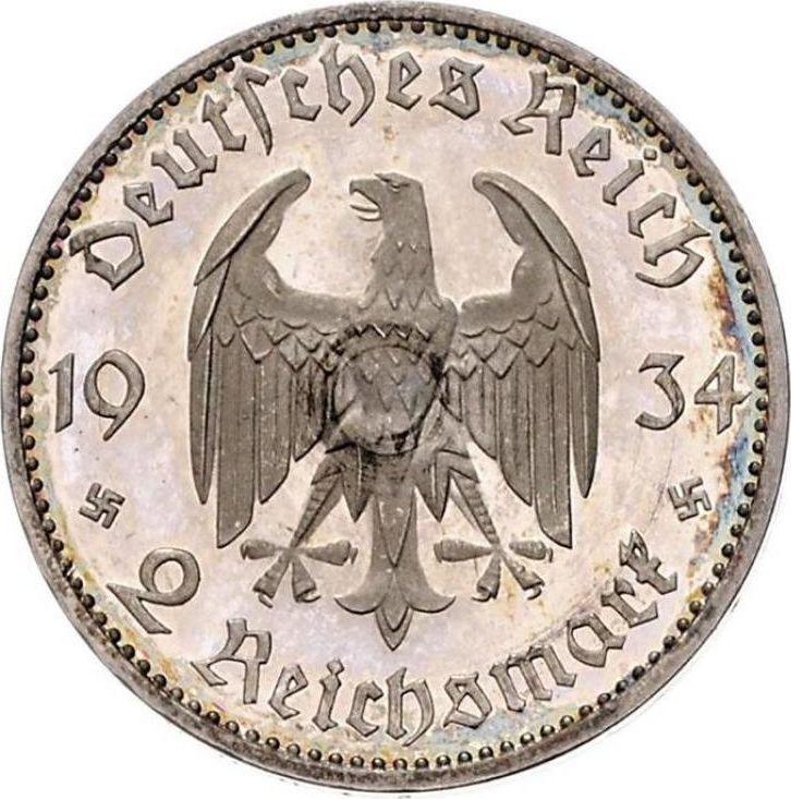 2 Reichsmark 1934 F "Garnisonkirche mit Datum" (Deutschland, Drittes Reich)