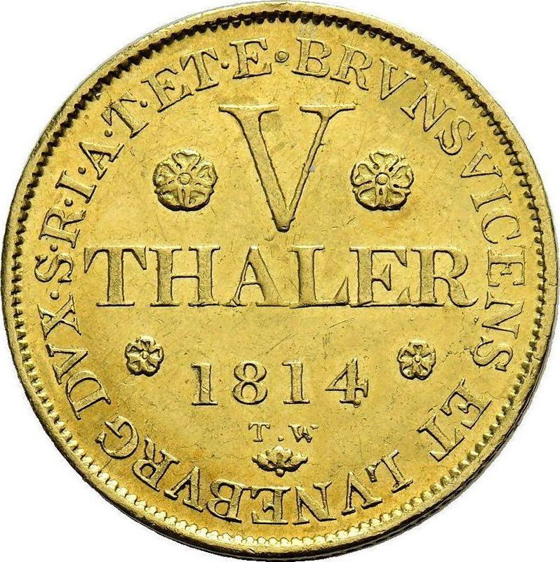 Entdecken Sie den aktuellen Wert der hannoverschen Münze 5 Taler 1814 mit Markierung T.W.. Diese Goldmünze stammt aus der Zeit Georg III und wurde vom Münzamt in London geprägt. Wie viel ist eine solche Münze wert? Der Rekordpreis gehört zu Los 161, welches bei Katz Auction für 1.552 EUR verkauft wurde. Die Versteigerung erfolgte am 30. August 2025.