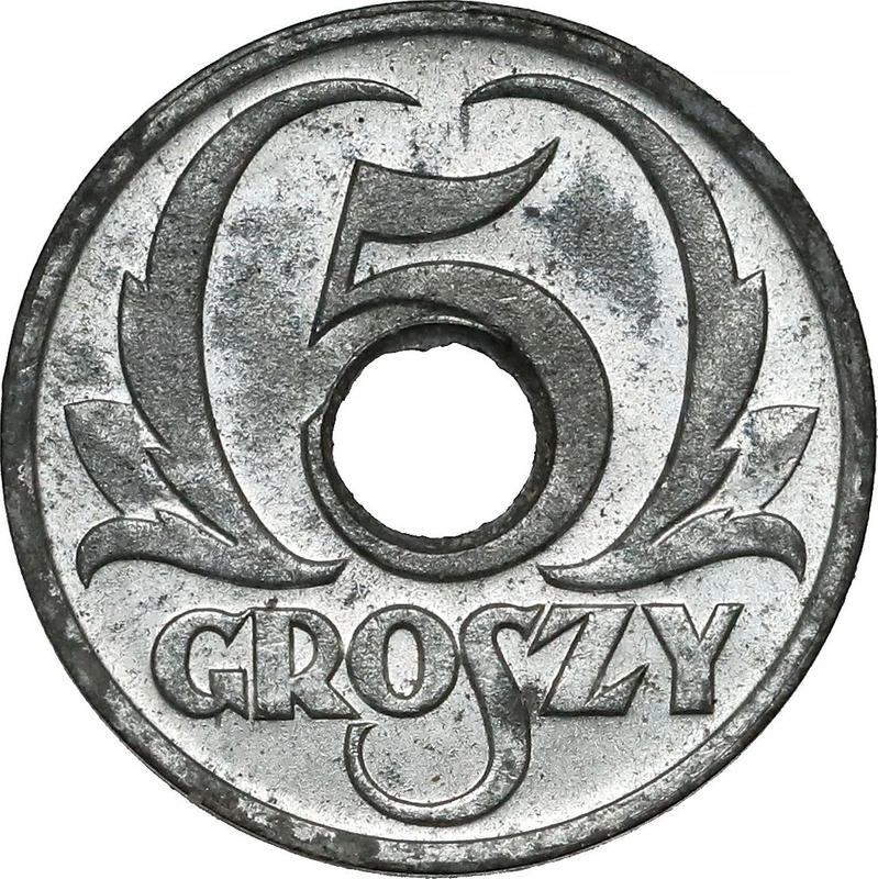 5 Groszy 1939. Zink. Mit Loch (Polen, Deutsche Besetzung)