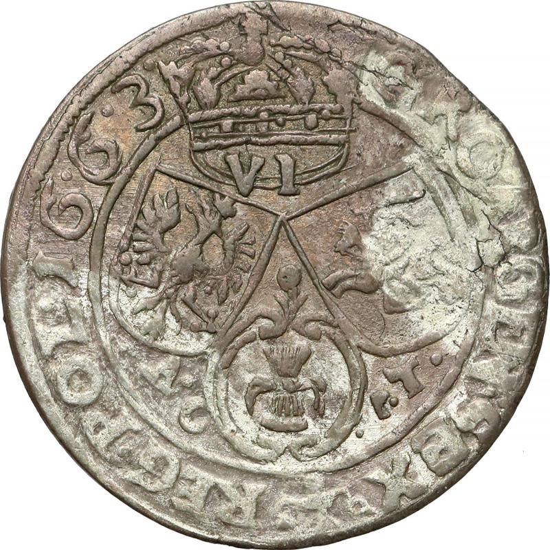 6 Gröscher 1663 AC-PT "Mit Rahmen" (Polen, Johann II Kasimir)