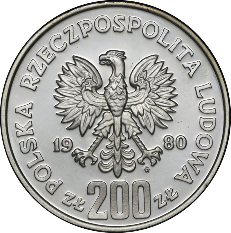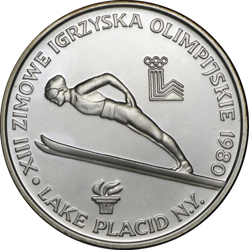 200 Zlotych 1980 MW "Lake Placid'80 Olympiade". Silber. Mit Fackel (Polen, Volksrepublik Polen)