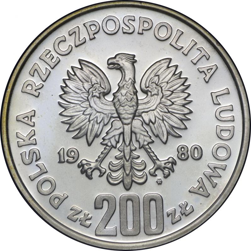 200 Zlotych 1980 MW "Lake Placid'80 Olympiade". Silber. Ohne Fackel (Polen, Volksrepublik Polen)