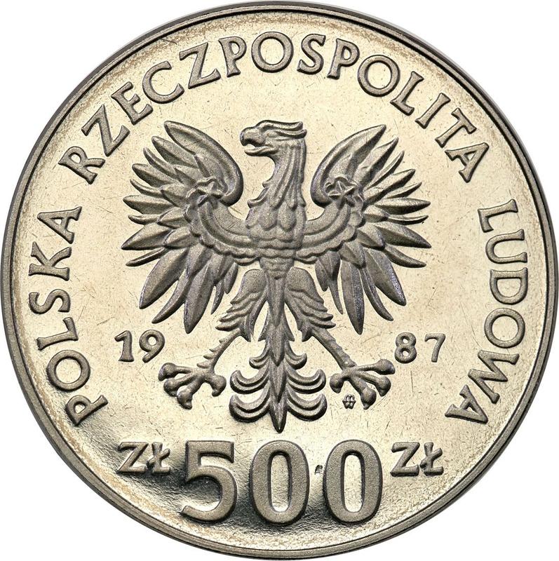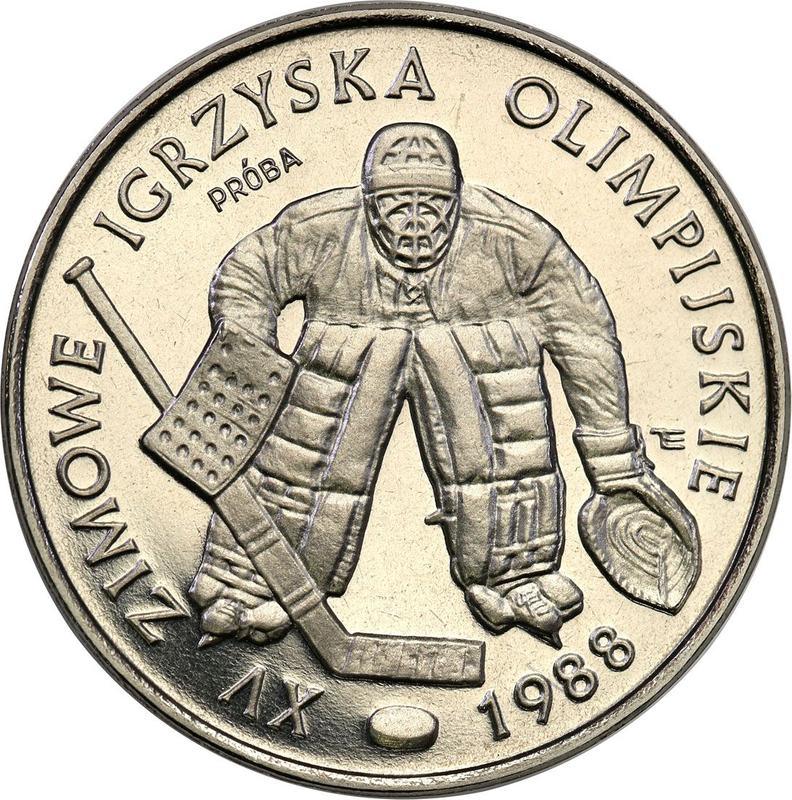 Probe 500 Zlotych 1987 MW ET "Olympia Calgary 1988". Nickel (Polen, Volksrepublik Polen)