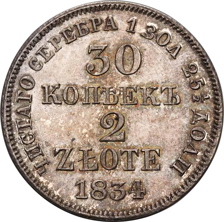 30 Kopeken - 2 Zlote 1834 MW (Polen, Russische Herrschaft)