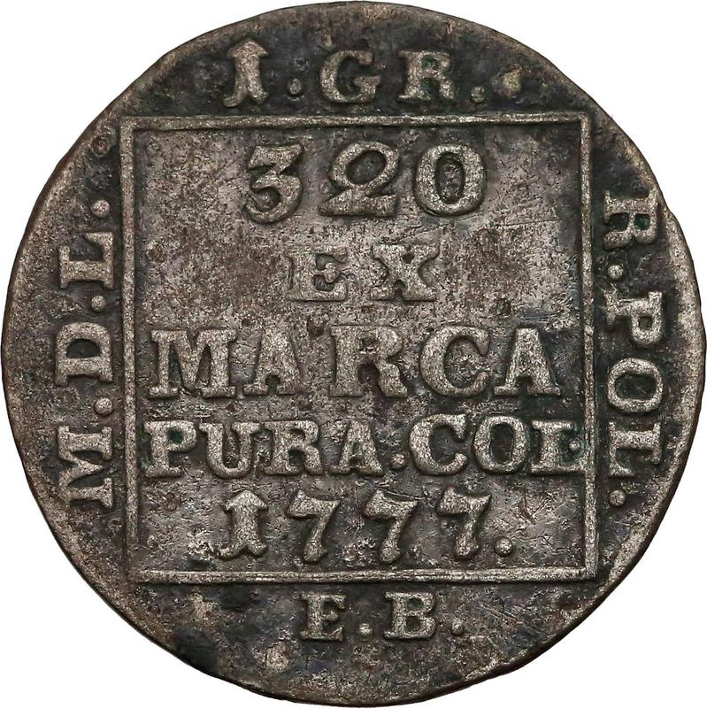 Entdecken Sie den aktuellen Wert der polnischen Münze Groschen 1777 mit Markierung EB. Diese Silbermünze stammt aus der Zeit von Stanislaus August und wurde vom Münzamt in Warschau geprägt. Wie viel ist eine solche Münze wert? Der Rekordpreis gehört zu Los 442, welches bei Warszawskie Centrum Numizmatyczne für 4.000 PLN verkauft wurde. Die Versteigerung erfolgte am 21. April 2018.