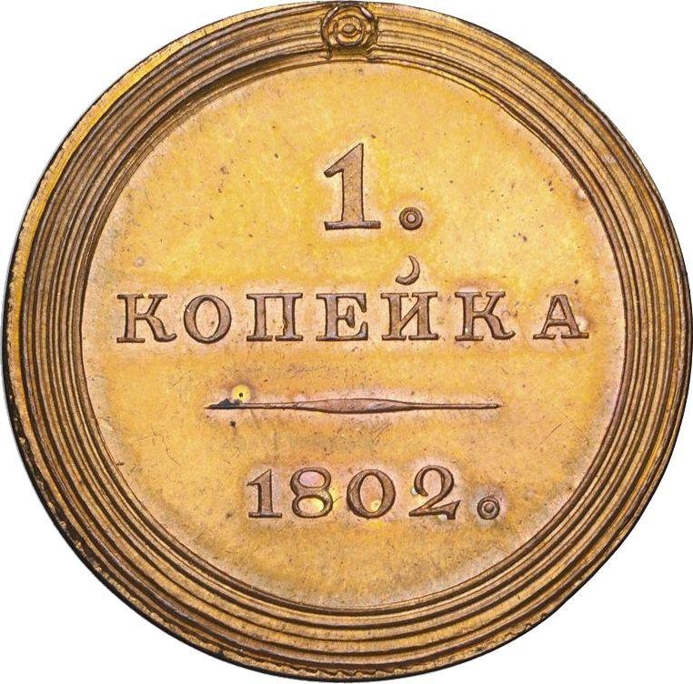 Probe 1 Kopeke 1802. Schräg gerippter Rand. Neuprägung (Rußland, Alexander I)