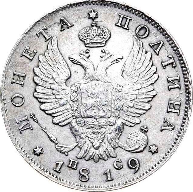Poltina (1/2 Rubel) 1819 СПБ ПС "Adler mit erhobenen Flügeln". Schmale Krone (Rußland, Alexander I)
