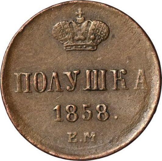 Polushka (1/4 Kopeke) 1858 ЕМ. Kleine Krone des Avers. Große Krone des Revers (Rußland, Alexander II)