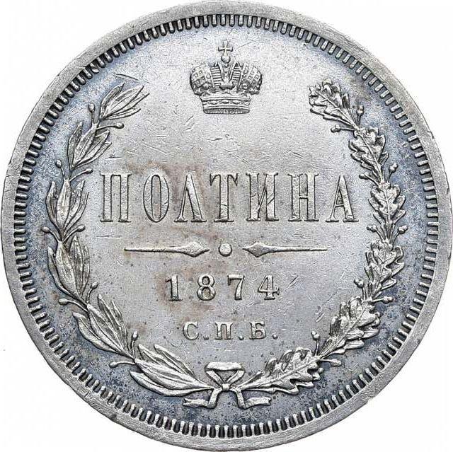 Entdecken Sie den aktuellen Wert der russischen Münze Poltina (1/2 Rubel) 1874 mit Markierung СПБ HI. Kleiner Adler. Diese Silbermünze stammt aus der Zeit von Alexander II und wurde vom Münzamt in Sankt Petersburg geprägt. Wie viel ist eine solche Münze wert? Der Rekordpreis gehört zu Los 33095, welches bei Heritage Auctions für 21.150 USD verkauft wurde. Die Versteigerung erfolgte am 8. Januar 2017.