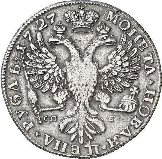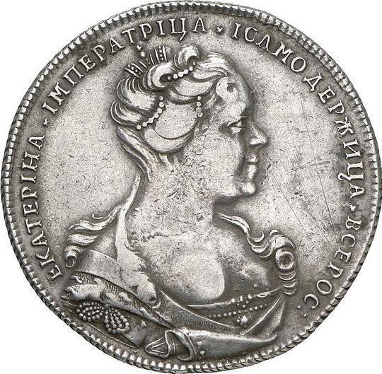Rubel 1727 СПБ "St. Petersburger Typ, Porträt nach rechts". Kleine Schleife auf der rechten Schulter (Rußland, Katharina I)