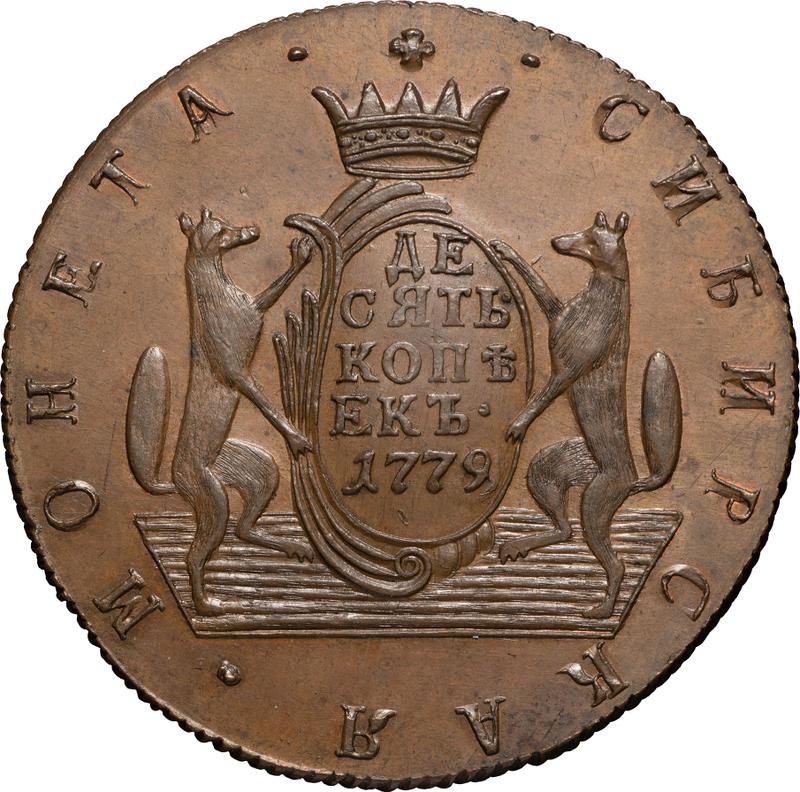 10 Kopeken 1779 КМ "Sibirische Münze". Neuprägung (Rußland, Katharina II)