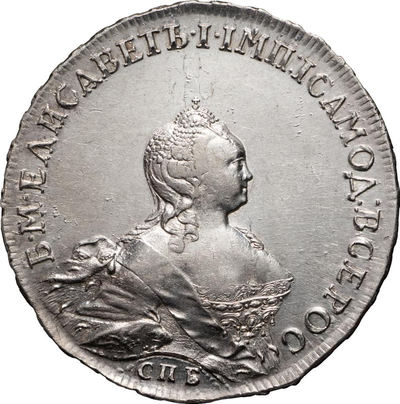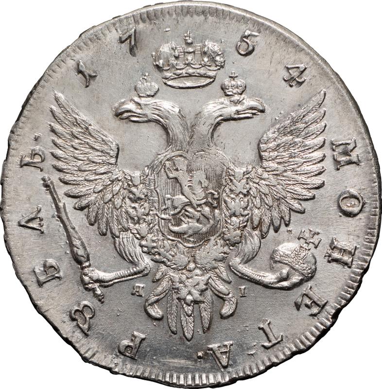 Rubel 1754 СПБ ЯI "Porträt von B. Scott" (Rußland, Elisabeth)