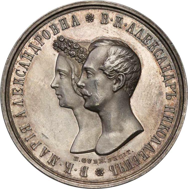 Entdecken Sie den aktuellen Wert der russischen Münze Medaille 1841 "Zur Erinnerung an die Heirat des Thronfolgers" mit Markierung H. GUBE. FECIT. Silber. Diese Silbermünze stammt aus der Zeit von Nikolaus I und wurde vom Münzamt in Sankt Petersburg geprägt. Wie viel ist eine solche Münze wert? Der Rekordpreis gehört zu Los 2054, welches bei SINCONA AG für 86.000 CHF verkauft wurde. Die Versteigerung erfolgte am 9. Oktober 2012.