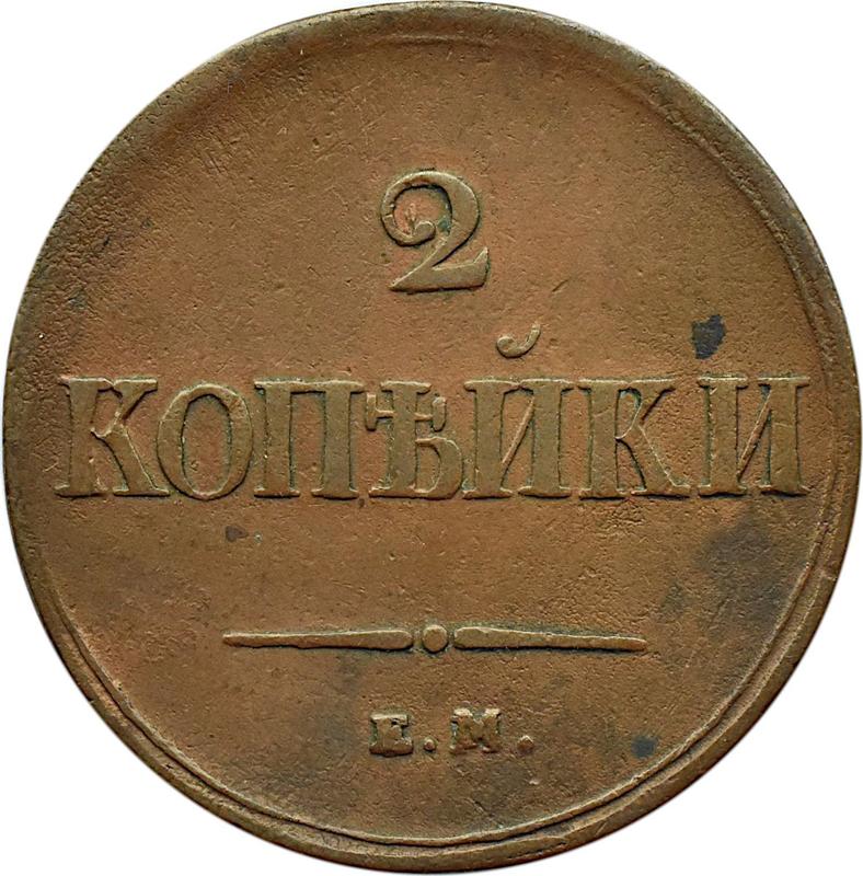 2 Kopeken 1839 ЕМ НА "Adler mit herabgesenkten Flügeln" (Rußland, Nikolaus I)