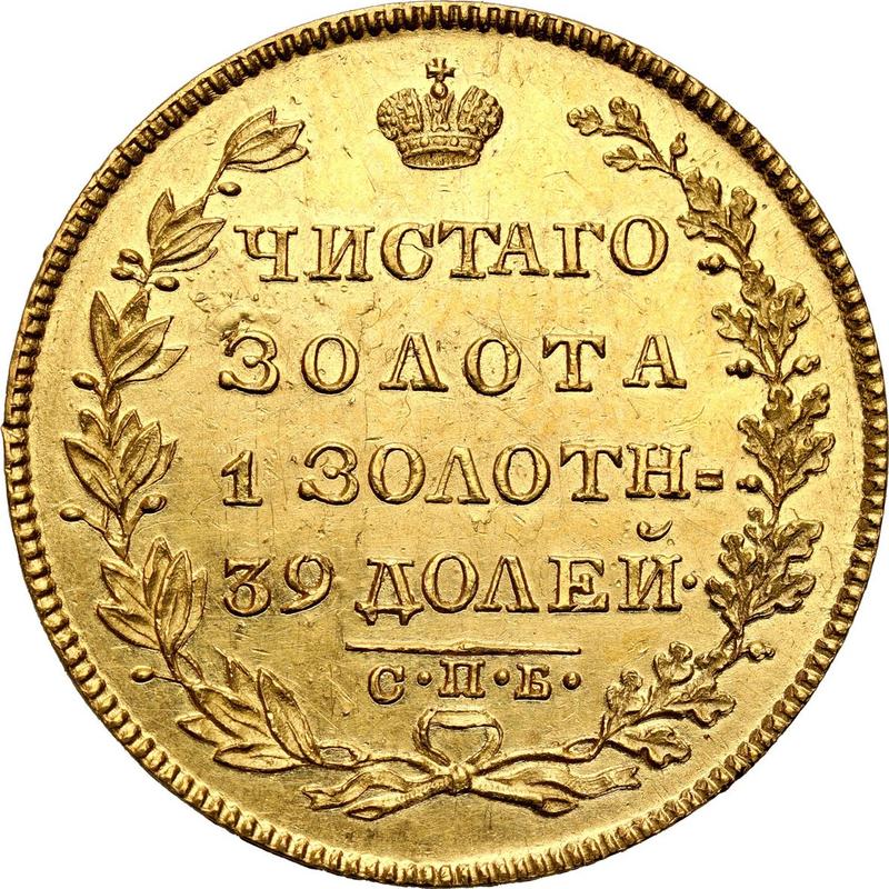 Entdecken Sie den aktuellen Wert der russischen Münze 5 Rubel 1829 "Adler mit herabgesenkten Flügeln" mit Markierung СПБ ПД. Diese Goldmünze stammt aus der Zeit von Nikolaus I und wurde vom Münzamt in Sankt Petersburg geprägt. Wie viel ist eine solche Münze wert? Der Rekordpreis gehört zu Los 185, welches bei Universum Coins GmbH für 50.000 EUR verkauft wurde. Die Versteigerung erfolgte am 27. April 2023.