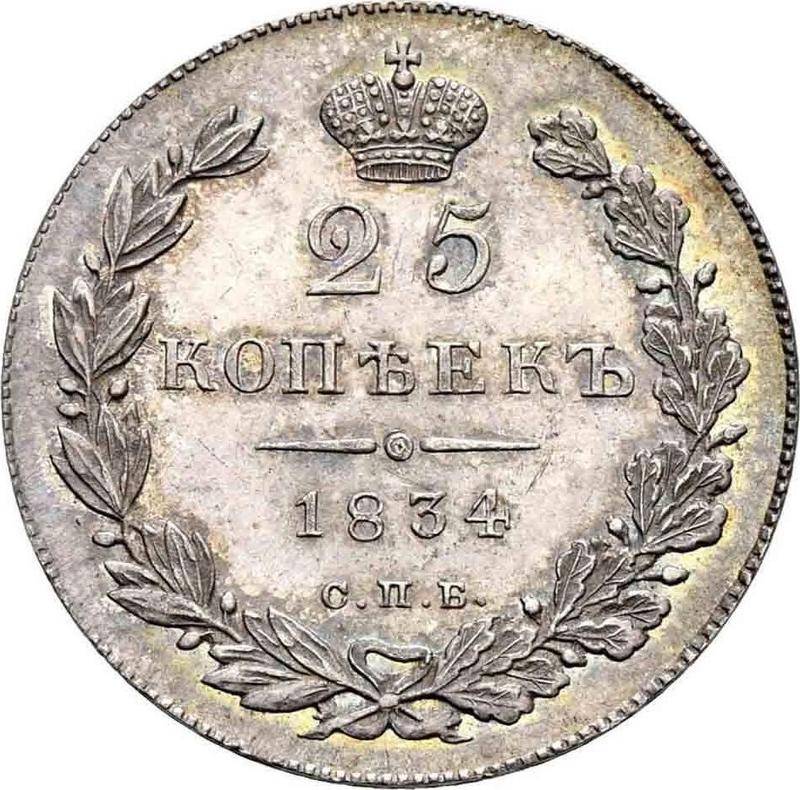 Entdecken Sie den aktuellen Wert der russischen Münze 25 Kopeken 1834 "Adler 1832-1837" mit Markierung СПБ НГ. Diese Silbermünze stammt aus der Zeit von Nikolaus I und wurde vom Münzamt in Sankt Petersburg geprägt. Wie viel ist eine solche Münze wert? Der Rekordpreis gehört zu Los 573, welches bei SINCONA AG für 16.000 CHF verkauft wurde. Die Versteigerung erfolgte am 14. Oktober 2013.