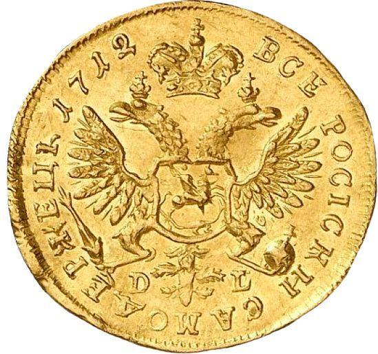 Tscherwonez (Dukat) 1712 D-L. Ohne Schnalle am Umhang. Der Kopf teilt die Inschrift nicht (Rußland, Peter I)