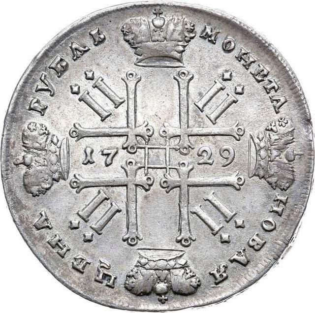 Rubel 1729 "Porträt mit Ordensband". Ohne Nieten über dem Ärmelsaum (Rußland, Peter II)