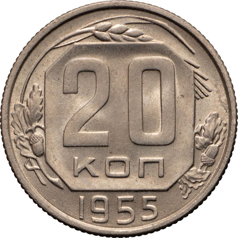 20 Kopeken 1955. Glatter Stern (Rußland, Sowjetunion)