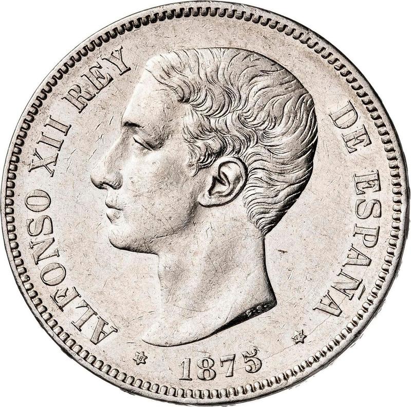 5 Pesetas 1875 DEM (Spanien, Alfons XII)