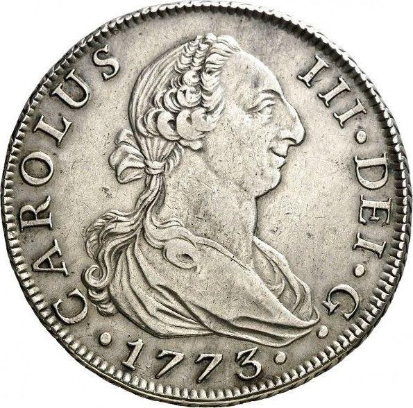Entdecken Sie den aktuellen Wert der spanischen Münze 8 Reales 1773 mit Markierung S CF. Diese Silbermünze stammt aus der Zeit von Karl III und wurde vom Münzamt in Sevilla geprägt. Wie viel ist eine solche Münze wert? Der Rekordpreis gehört zu Los 2185, welches bei Soler y Llach S.L. für 1.100 EUR verkauft wurde. Die Versteigerung erfolgte am 27. Oktober 2021.