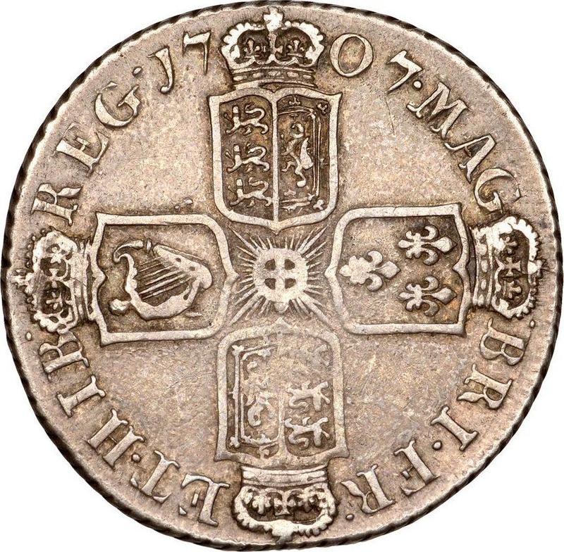 1 Schilling 1707 E * "Zweiter Porträttyp". Nach der Vereinigung (Großbritannien, Anne)