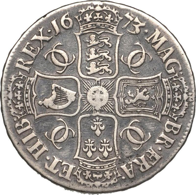 1 Krone 1673 "Dritte lorbeerbekrönte Büste" (Großbritannien, Karl II)