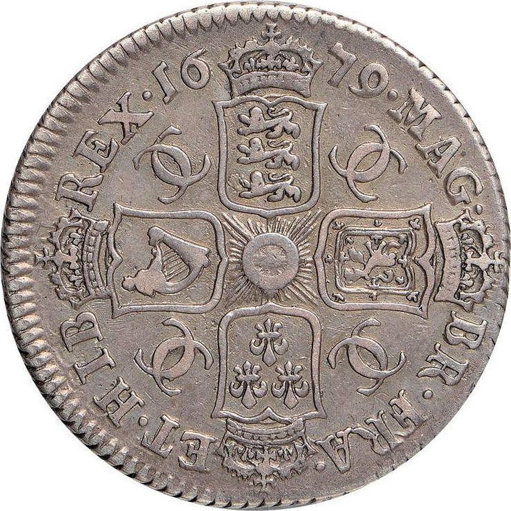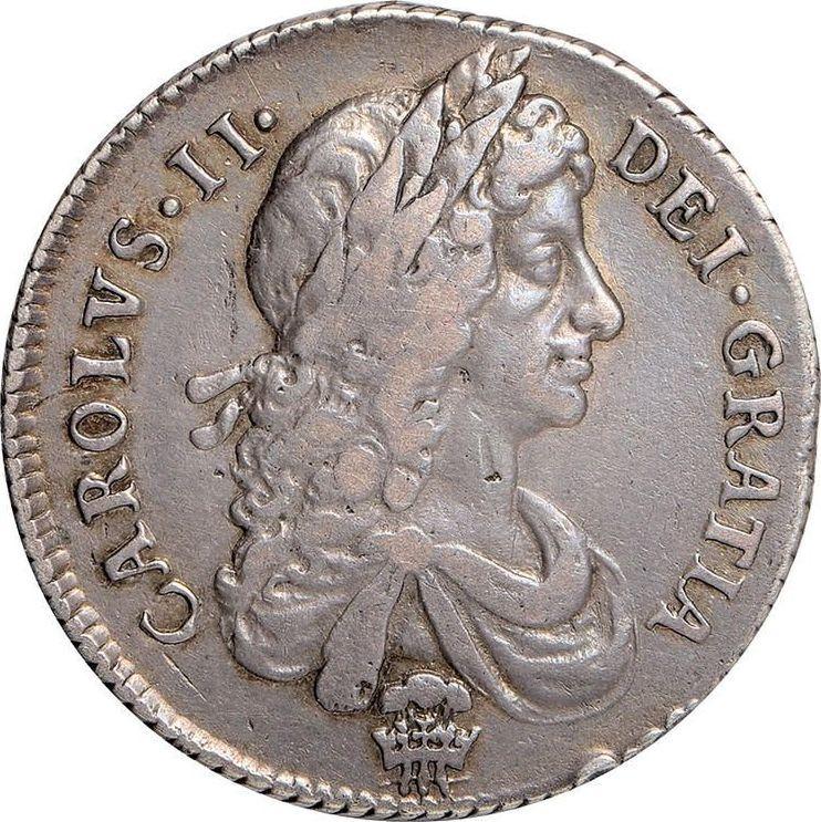 1 Schilling 1679 "Zweite Lorbeerbüste". Feder unter der Büste nur (Großbritannien, Karl II)