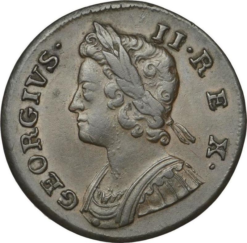 1/2 Penny 1738 "Porträt in jungen Jahren" (Großbritannien, Georg II)